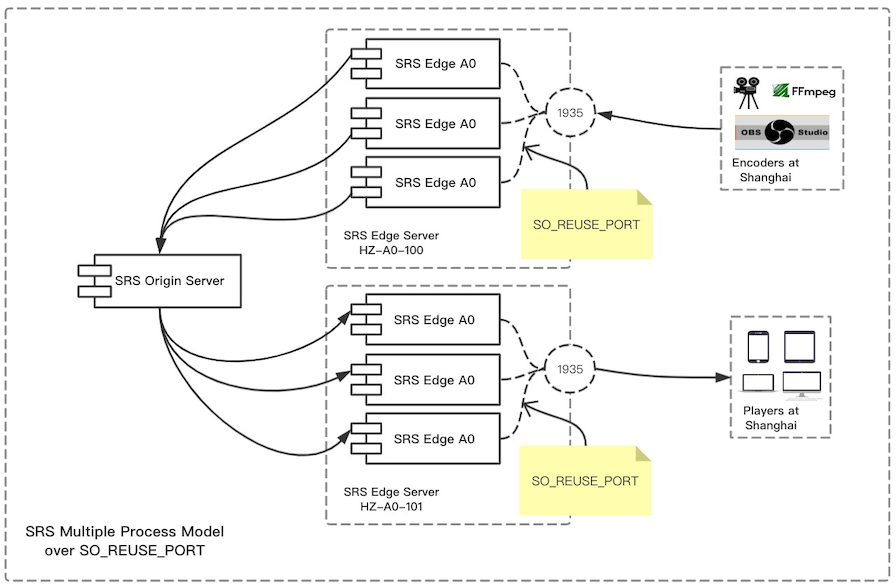 The performance of SRS2 is improved huge, but is it enough? Absolutely NOT! In SRS3, we provide OriginCluster for multiple origin servers to work together, and go-oryx as a tcp proxy for edge server, and these are not good enough, so we support SO_REUSEPORT feature for multiple processes edge server.