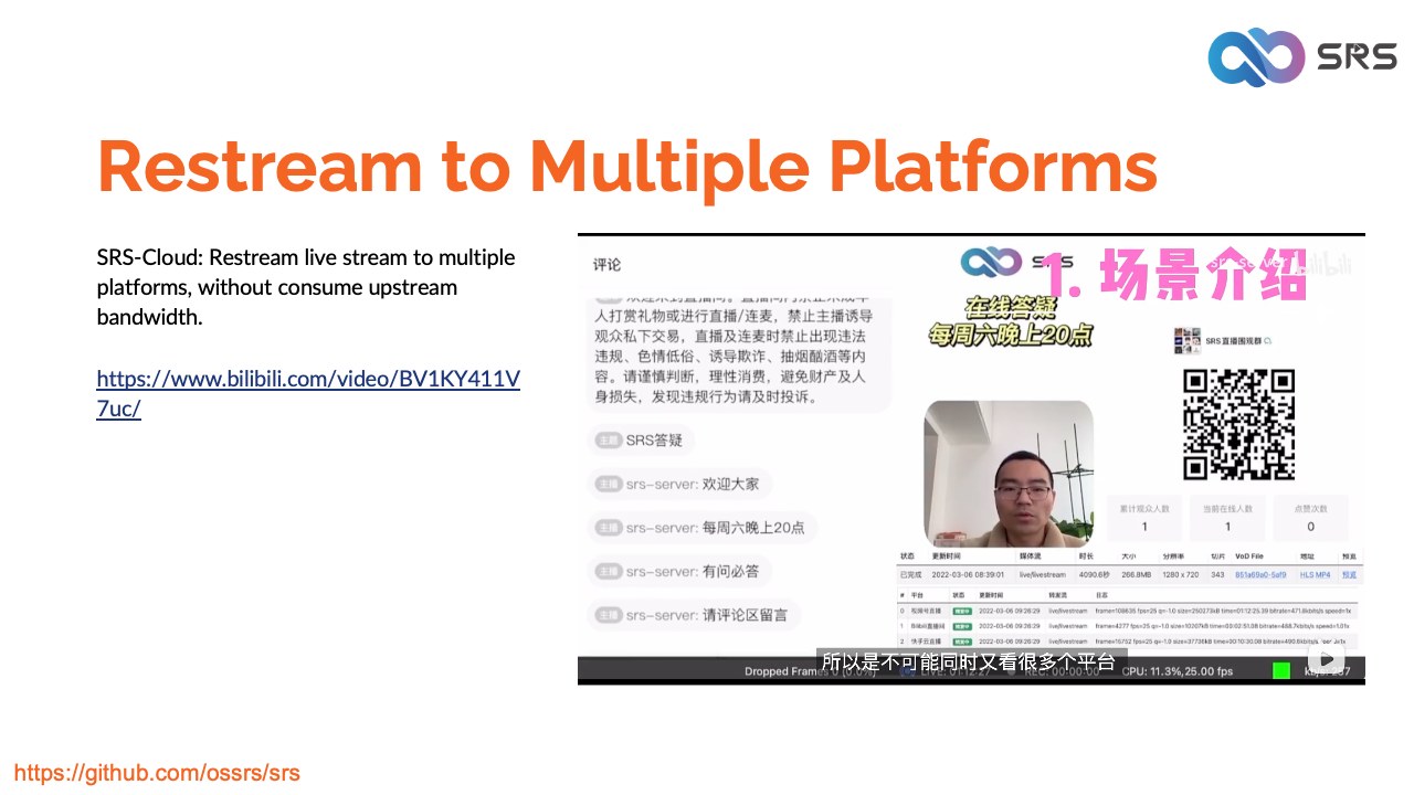 发掘SRS服务器的能力,这是一款全能的开源媒体服务器解决方案,可以实现无缝的直播流媒体、内容创作和AI等系统集成, 支持视频号、抖音、B站和快手等平台上的多平台直播。