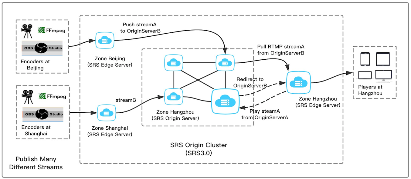 关于源站集群的设计参考Issue#464。 源站集群主要解决大量推流的情况,比如需要推1万路流。